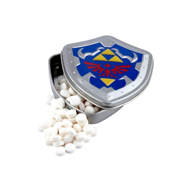 Tout droit sorti du jeu The Legend Of Zelda, découvrez le bouclier de Link, sous forme d'une Boîte métal collector contenant plein de petits bonbons à la menthe!