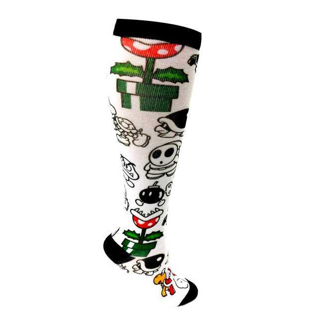 Devenez fashion-Geek! Affichez tous les énemis du celèbre plombier moustachu issus de la saga Super Mario Bros de Nintendo. Avec ces Chaussettes Hautes Goomba, Koopa Troopa, la Plante Piranha, Bob-omb vont envahir vos gambettes!