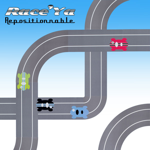 Un circuit voiture gris aux bolides multi-colores - RePositionnables
