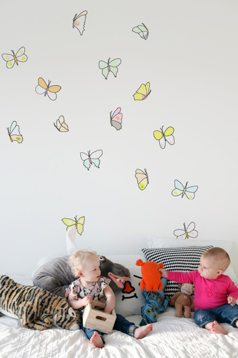 Habillez les murs de vos enfants avec cette très belle et poétique série de stickers papillon, aux couleurs douces et variées et dessinées comme des aquarelles.