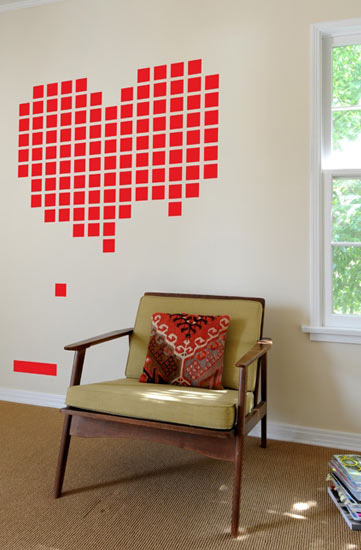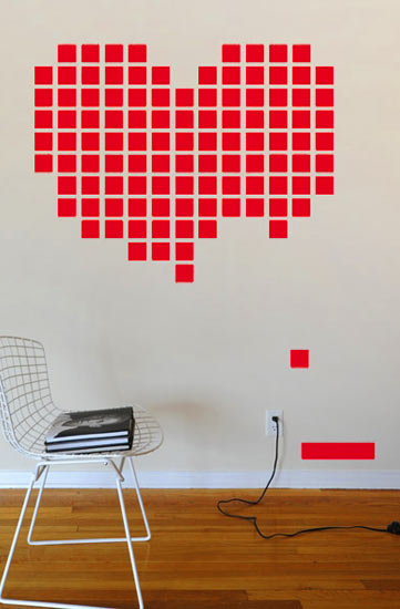 * 1 sticker coeur en pixel de dimension (environ) 1,57 metres x 1,27 metres
