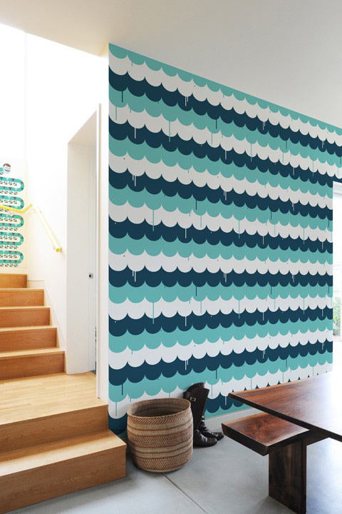 Les fresques murales adhésives 'Scallops' par Jim Houser vous font entrer de plein pied dans l'univers multi-support de l'artiste, ici avec ses peintures et ses gouttelettes.